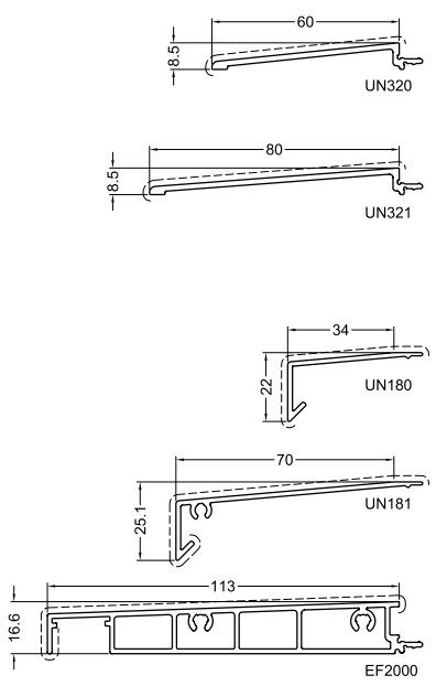 UN 119 = profil d’attache fixé sur le dormant à l’usine
